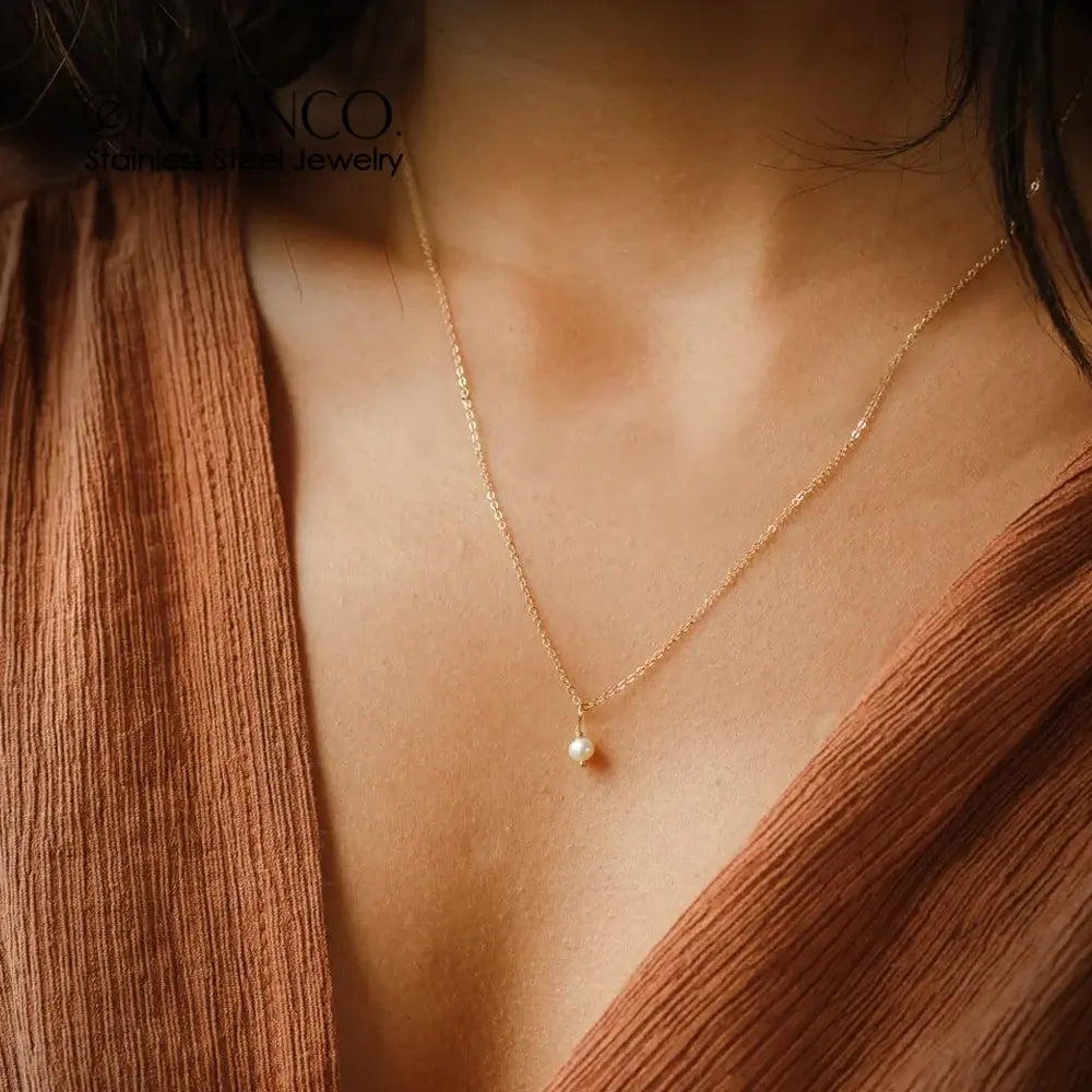 eManco Minimalistische Halskette mit natürlichen Süßwasserperlen, Edelstahl, PVD-Goldfarbe, für Damen, Alltag, Freizeit, Party, Date, Geburtstag