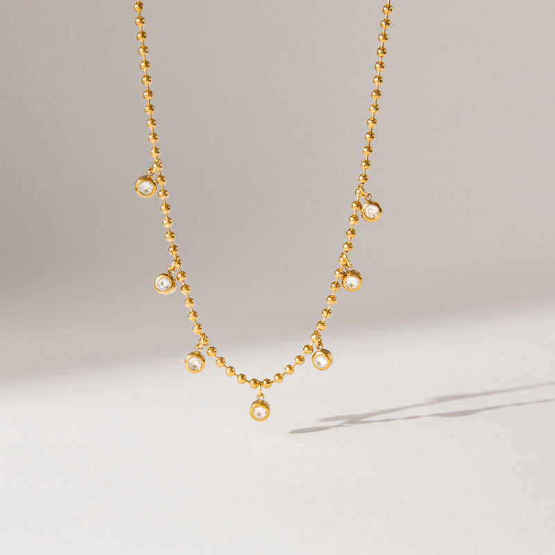 Rostfreier Edelstahl-Schmuck, Anlaufgeschützt, 18K PVD-Vergoldet, Minimalistische Filigrane Zirkon-Choker-Halskette